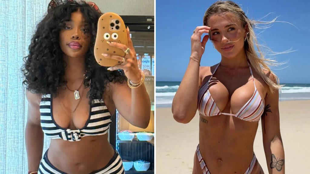 Thirsty Thursday never felt so good … SZA and Tammy Hembrow both rocked striped bikinis, but which lucky lady is…