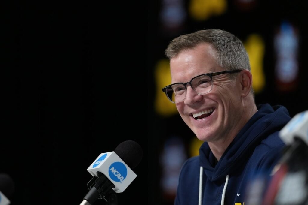 Apr 5, 2026; Indianapolis, IN, USA; Michigan Wolverines head coach Dusty May during a press conference ahead of the Final…