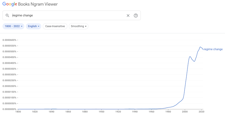 The concept of “regime change” gained wider use after the Cold War as a way to describe externally imposed political transformation without relying on older, more direct terms.