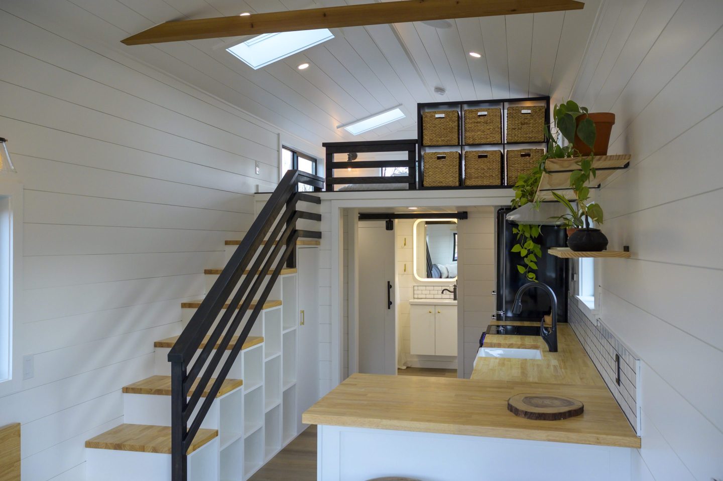 “The primary reason why I relocated here was because I had a granddaughter, and I now have a second granddaughter who’s four months old,” Martin tells Fortune. Luckily her son-in-law, Bijan Taherkhan, just so happened to own his own micro-home business: Spindrift Tiny Homes. And with enough room on the family’s property in Bend, Oregon to fit another structure, Taherkhan built her a custom model suited to her needs: a 10-by-10 foot loft where she sleeps, hovering above a 300-square-foot living space.