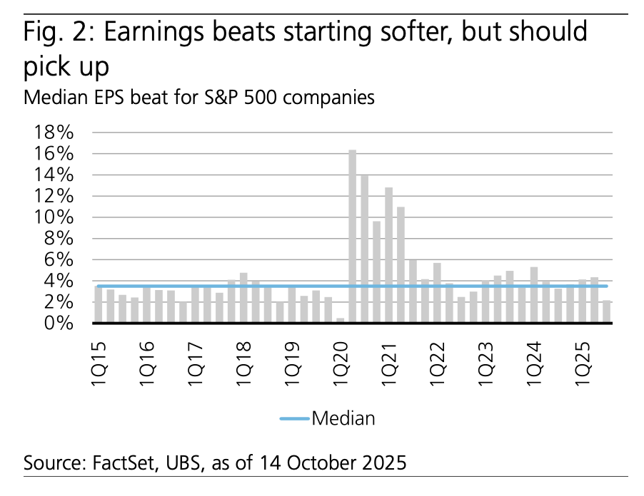 Overall, UBS added, it sees third quarter earnings season as supportive of the bank’s view that “the bull market remains intact,” driven by the combination of durable earnings growth and Fed rate cuts.